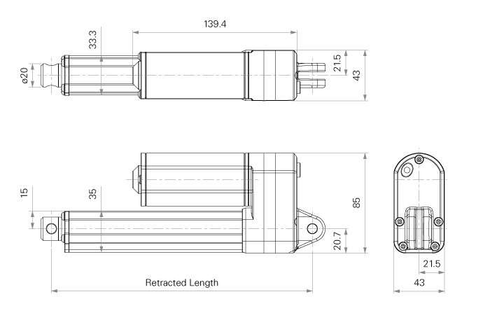 • Velocità massima a pieno carico: 6,5mm/s (con 3 500N in condizione di spinta o tiro)